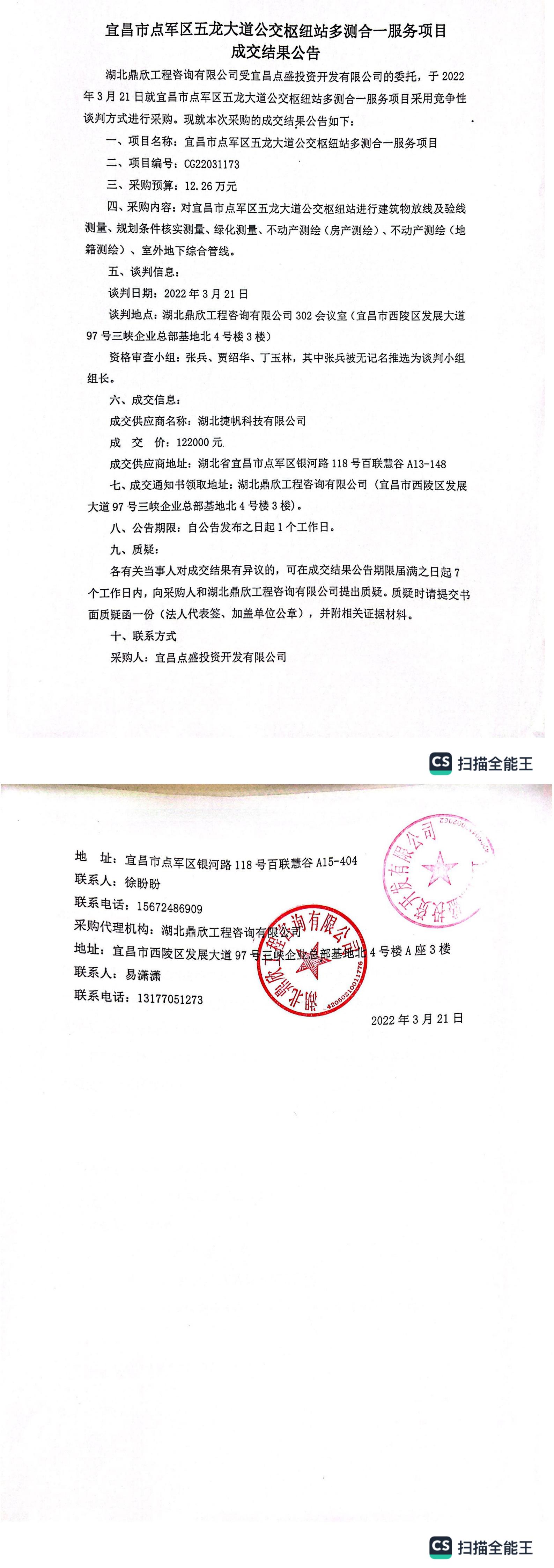 宜昌市點軍區(qū)五龍大道公交樞紐站多測合一服務項目成交結(jié)果公告