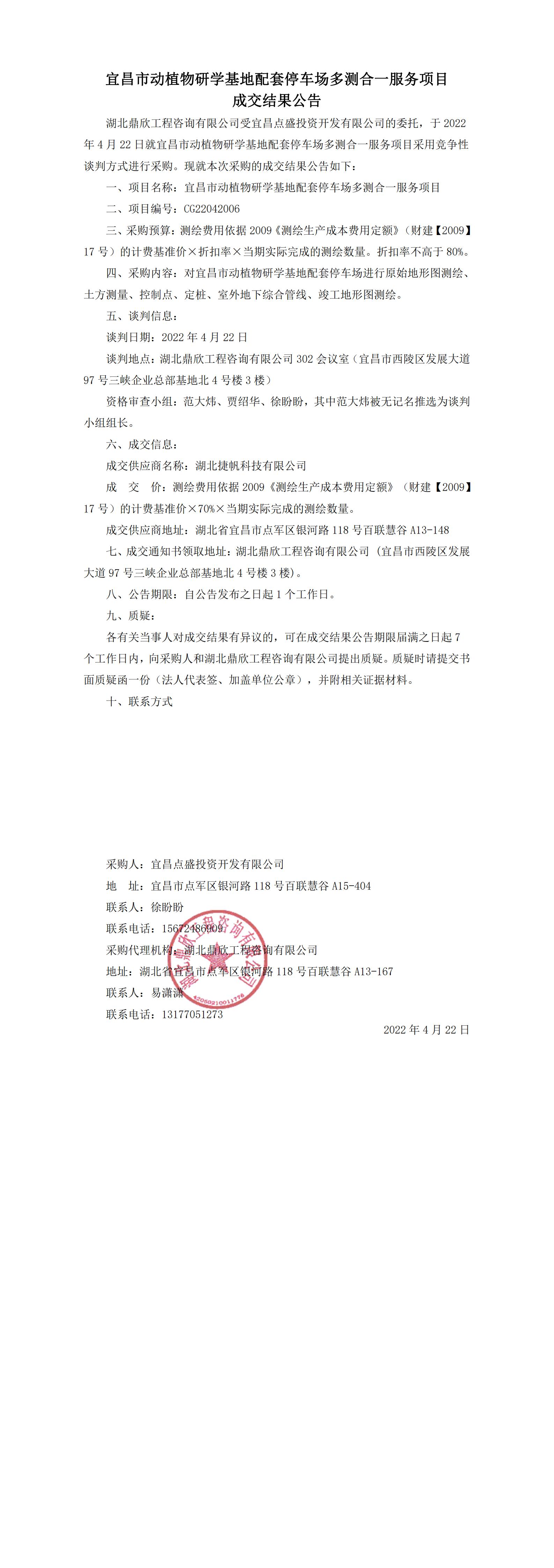 宜昌市動植物研學(xué)基地配套停車場多測合一服務(wù)項目成交結(jié)果公告