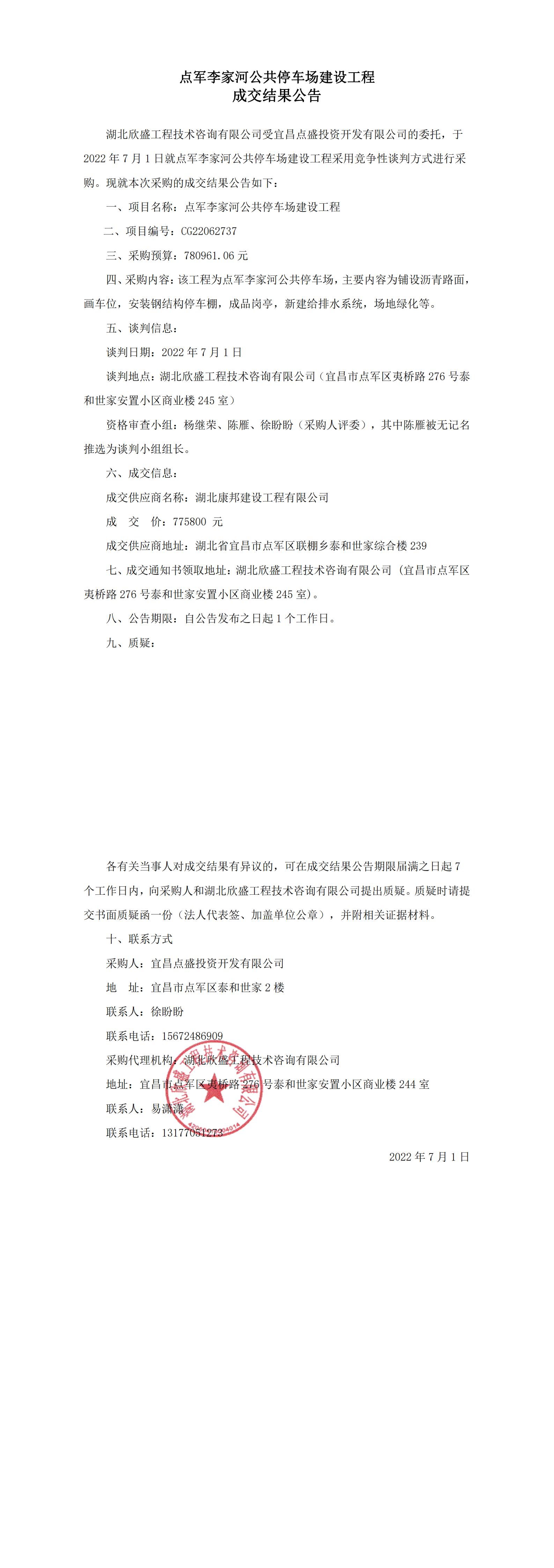 點(diǎn)軍李家河公共停車場(chǎng)建設(shè)工程成交結(jié)果公告
