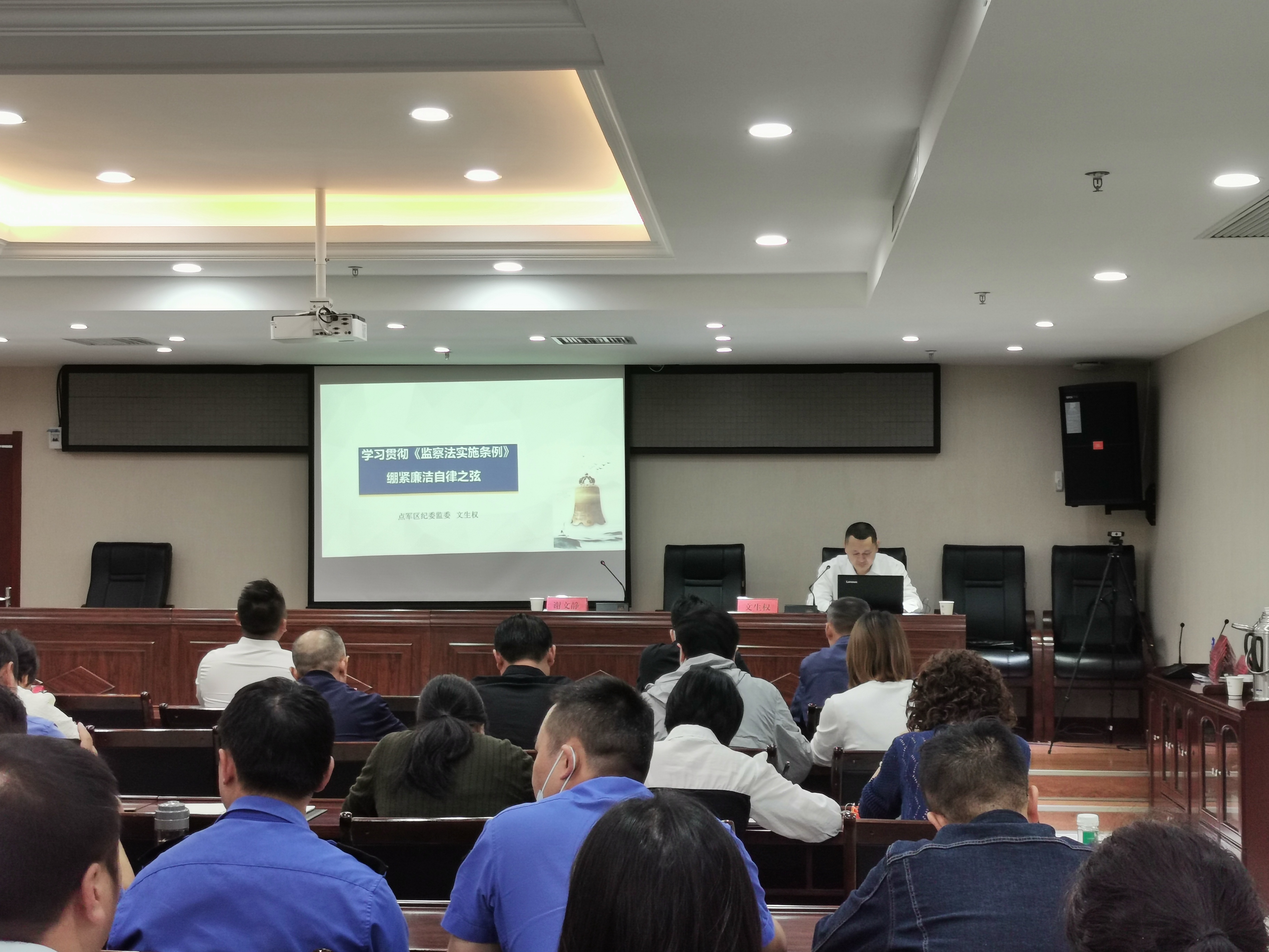 宣講以《學習貫徹<監(jiān)察法實施條例>繃緊廉潔自律之弦》為題,從《監(jiān)察法》及實施條例的關(guān)系,《條例》制定的背景、重要意義及主要內(nèi)容,職務犯罪釋義及幾種典型職務犯罪解析,公職人員禁止經(jīng)商辦企業(yè)的相關(guān)規(guī)定,如何做一名遵紀守法的黨員干部五個方面進行講解,以案說紀,進一步教育廣大黨員干部樹牢紀法意識。