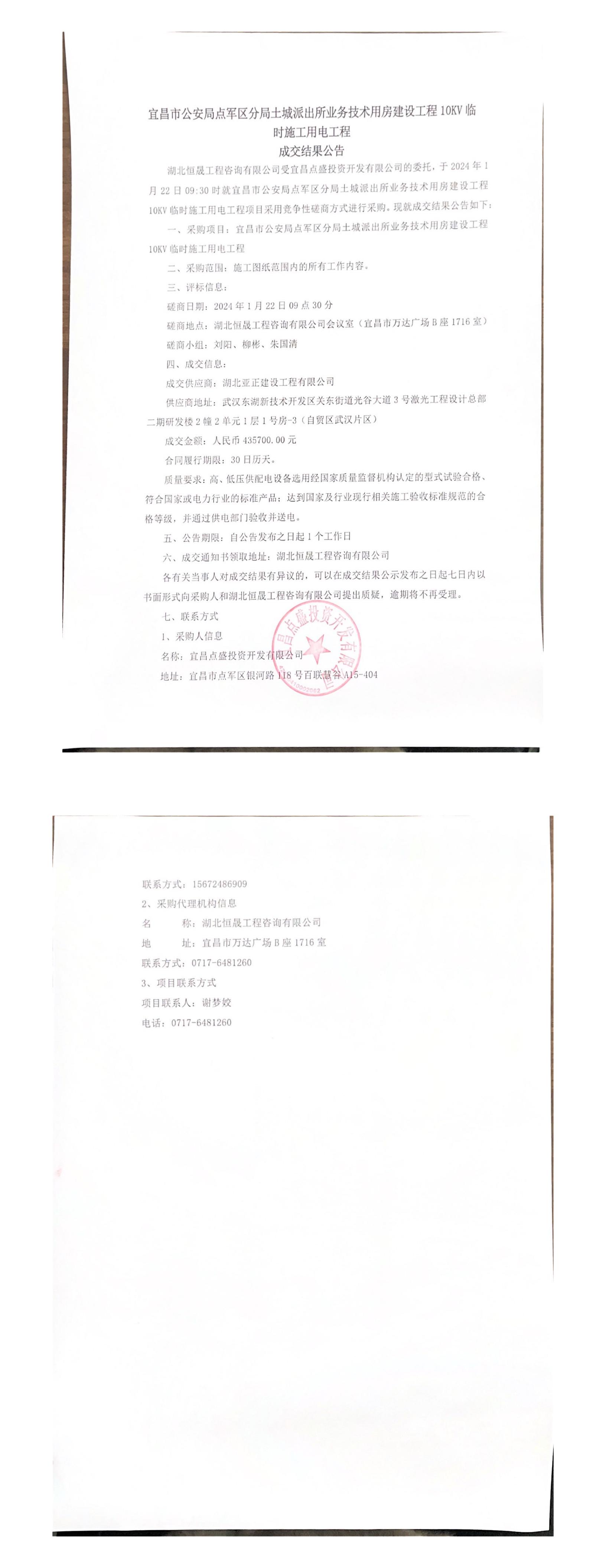 土城派出所10KV施工用電成交結果公告