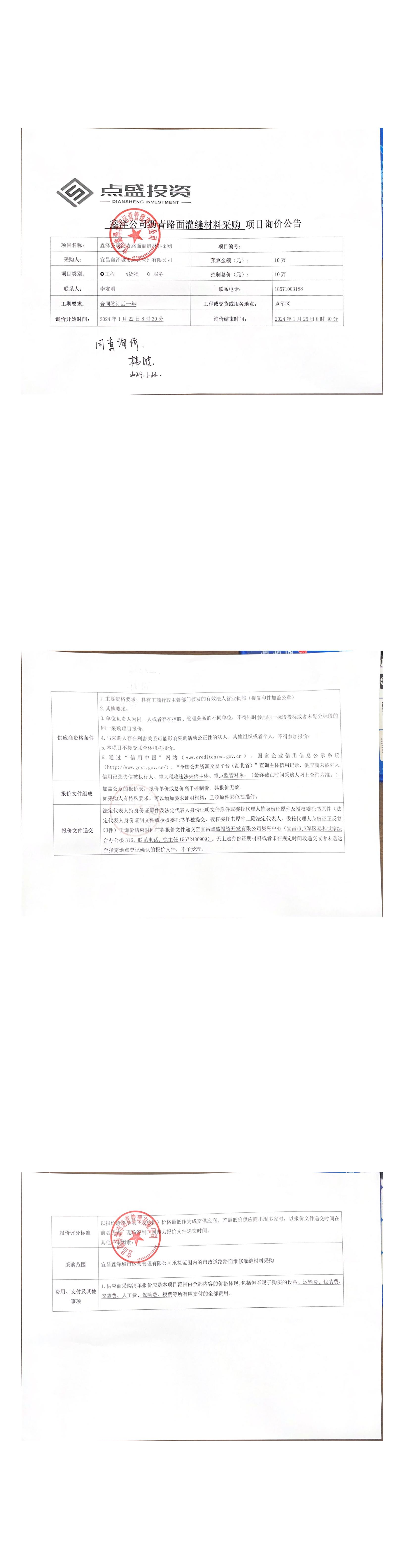鑫澤公司瀝青路面灌縫材料詢價(jià)公告