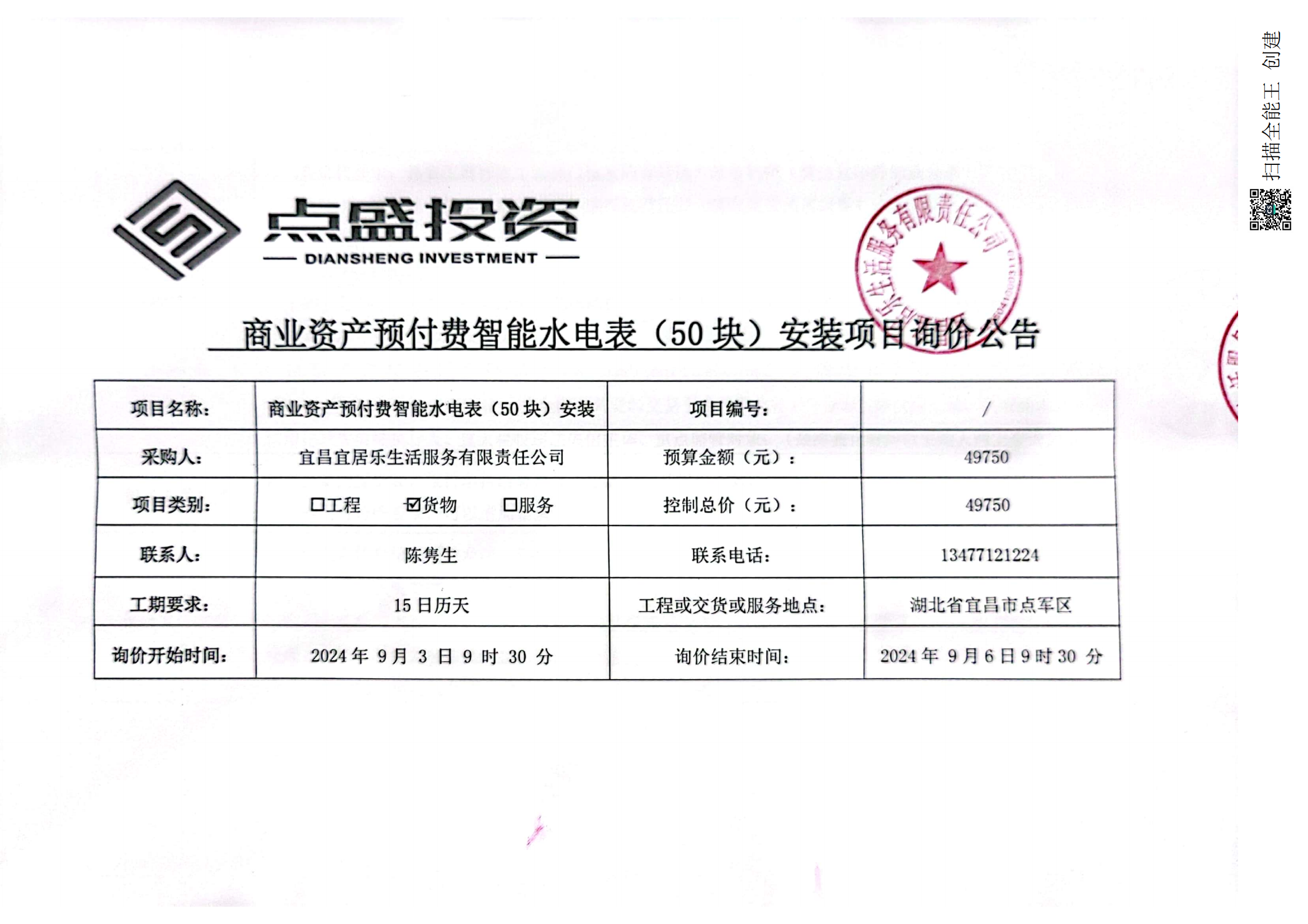 商業(yè)資產(chǎn)預(yù)付費智能水電表(50塊)安裝