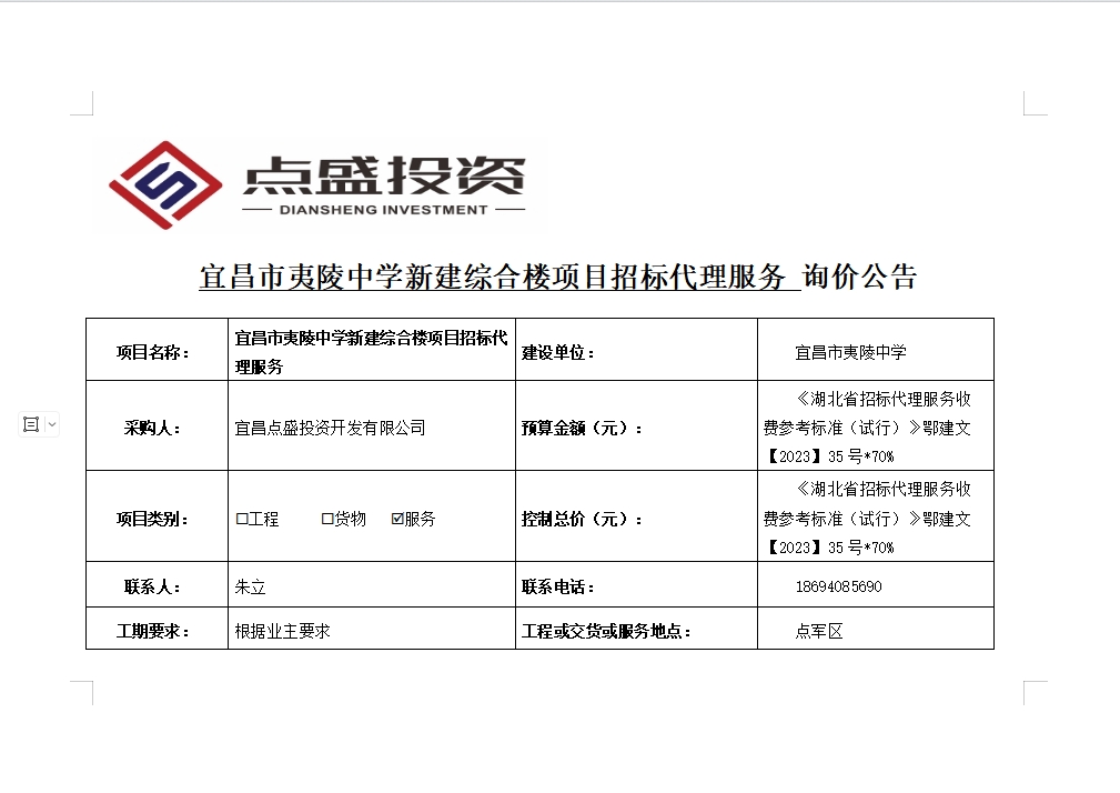 宜昌市夷陵中學新建綜合樓項目招標代理服務詢價公告