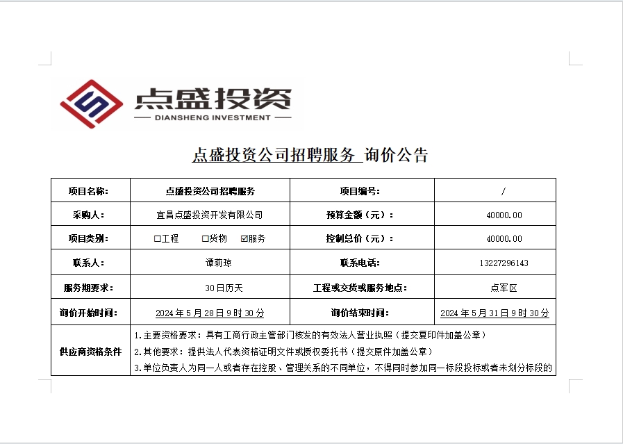 發(fā)布時間:2024/5/28 來源:宜昌點盛投資開發(fā)有限公司 訪問:6506