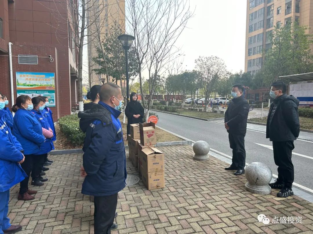 1月20日上午,點(diǎn)盛公司董事長(zhǎng)楊濤,副總經(jīng)理胡昌俊到奧錦花園等五個(gè)宜居樂(lè)物業(yè)進(jìn)駐小區(qū)進(jìn)行安全生產(chǎn)、物業(yè)日志記錄情況檢查,并慰問(wèn)物業(yè)工作人員,把溫暖逐一送到堅(jiān)守一線(xiàn)的宜居樂(lè)物業(yè)人身邊。